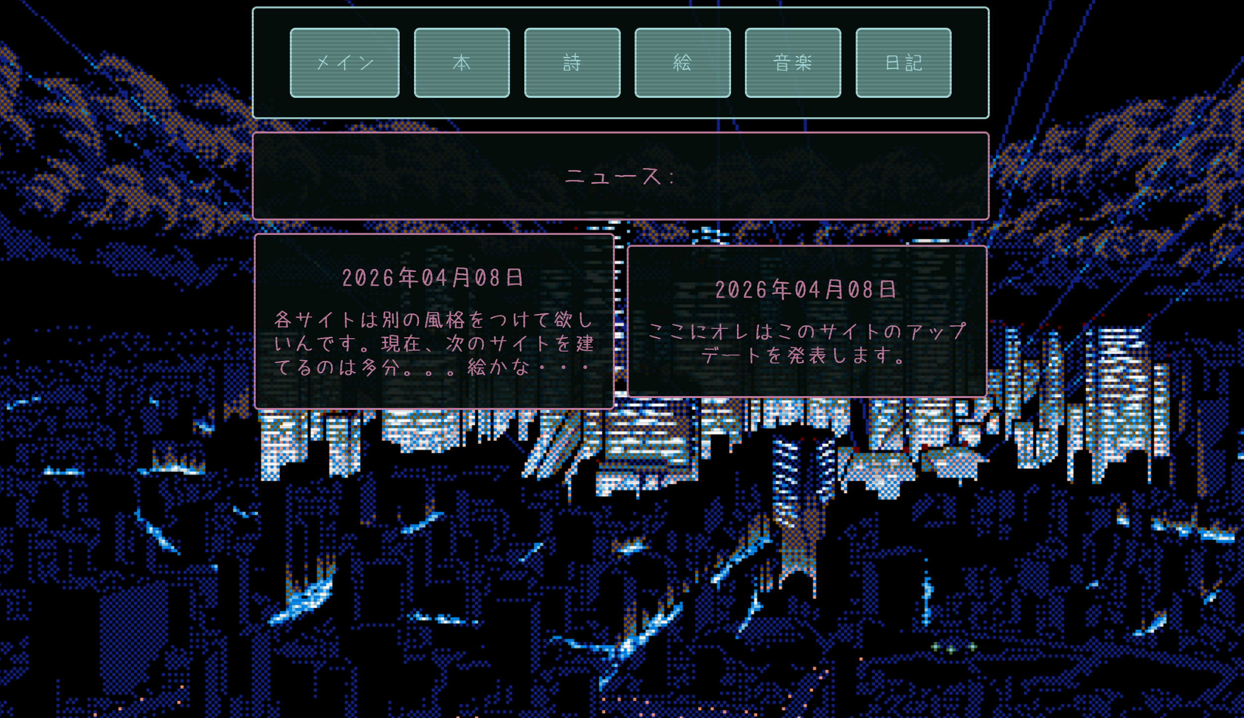 各サイトは別の風格をつけて欲しいんです。現在、次のサイトを建てるのは多分。。。絵かな・・・